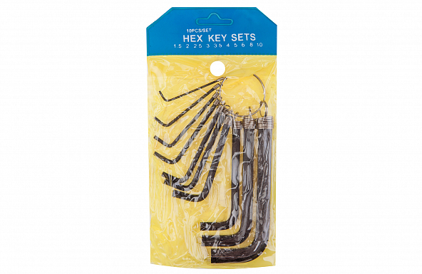 Набор шестигранников KL-9701 KENLI, 10шт на 1.5/2/2.5/3/3.5/4/5/6/8/10мм на кольце, в инд. упаковке